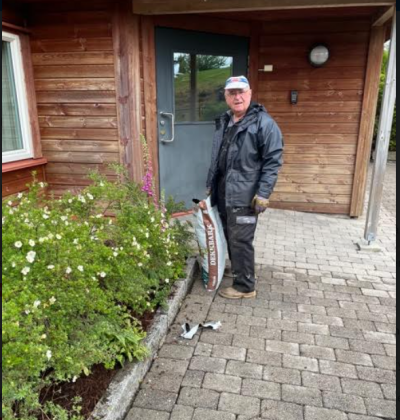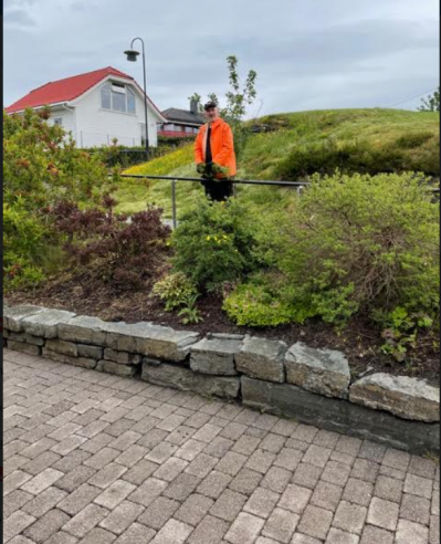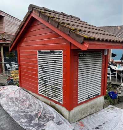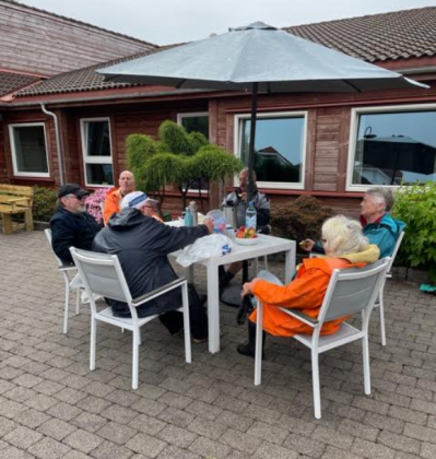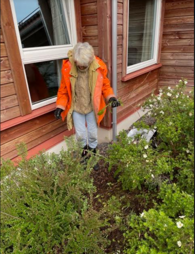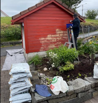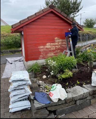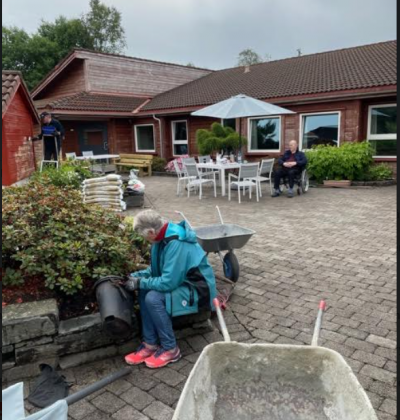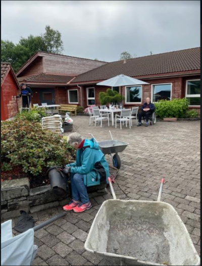 Sist sommer ble det bygd en pergola slik at beboerne kan sitte ute under tak. I tillegg til å gjøre en samfunnsnyttig innsats for våre eldre på sykehjemmet ser vi at